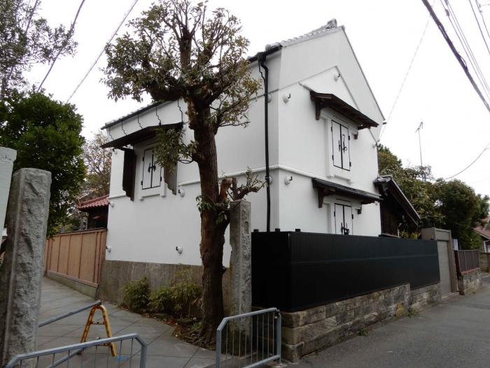2階建ての土蔵とその付属室である平屋建ての蔵前からなる複合建築で、街路から望む白壁が印象的な土蔵であり、地域のランドマークとなっています。