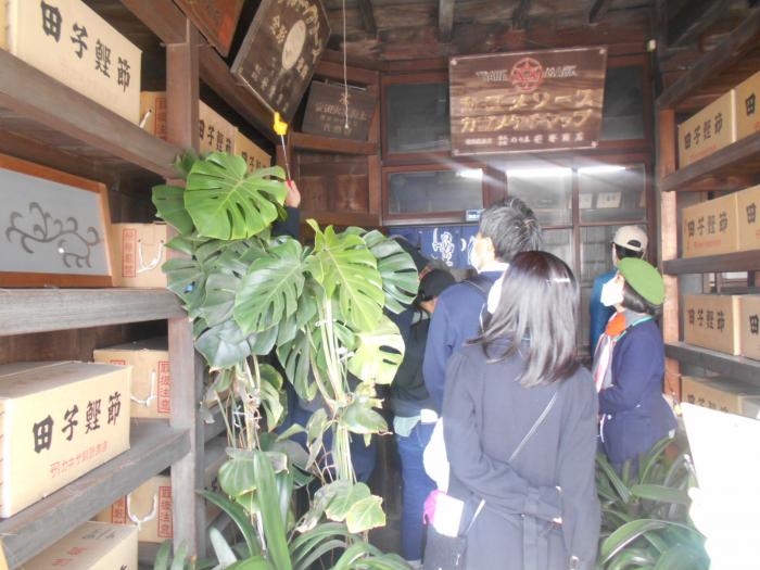 白日堂(鎌倉市景観重要建築物等指定第13号)や旅館対僊閣(同指定第19号)、旧三橋旅館蔵(同指定第35号)など長谷エリアの鎌倉市景観重要建築物等を解説を交えて巡った後、各建物のスタンプをあつめました。当日は天候に恵まれ、小学生児童と保護者3組計7名にご参加いただきました。