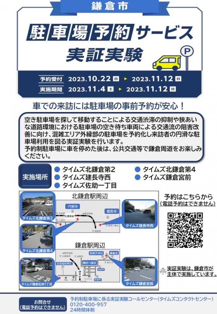 なお、本実証実験は、国土交通省関東地方整備局と締結した「鎌倉市域における交通環境改善に向けた観光渋滞対策に関する基本協定」及び「鎌倉市域における交通環境改善に向けた観光渋滞対策の実施に関する協定」に基づき実施するものです。