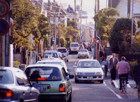 今小路通りは、鎌倉駅の西側を若宮大路と並行して南北に伸びており、その道路幅員は約7m程度と、歩道を設置することが難しい交互通行の狭隘な生活道路です。しかし、土曜日や休日ともなると、若宮大路の渋滞を避けて都心方面への帰路につこうとする観光交通が入りこみ、平日とは一転して大変な交通混雑が発生します。その一方で、この道路は、鎌倉駅西側に点在する観光資源へのアクセス道路でもあり、観光を目的とした多くの歩行者が通行します。このため、自動車と歩行者が輻輳し、交通安全上望ましいものとはいえません。このような状況は、沿道に住まう市民の生活にも大きな支障を来しており、何らかの対策を求める非常に多くの声が市にも寄せられていました。 |