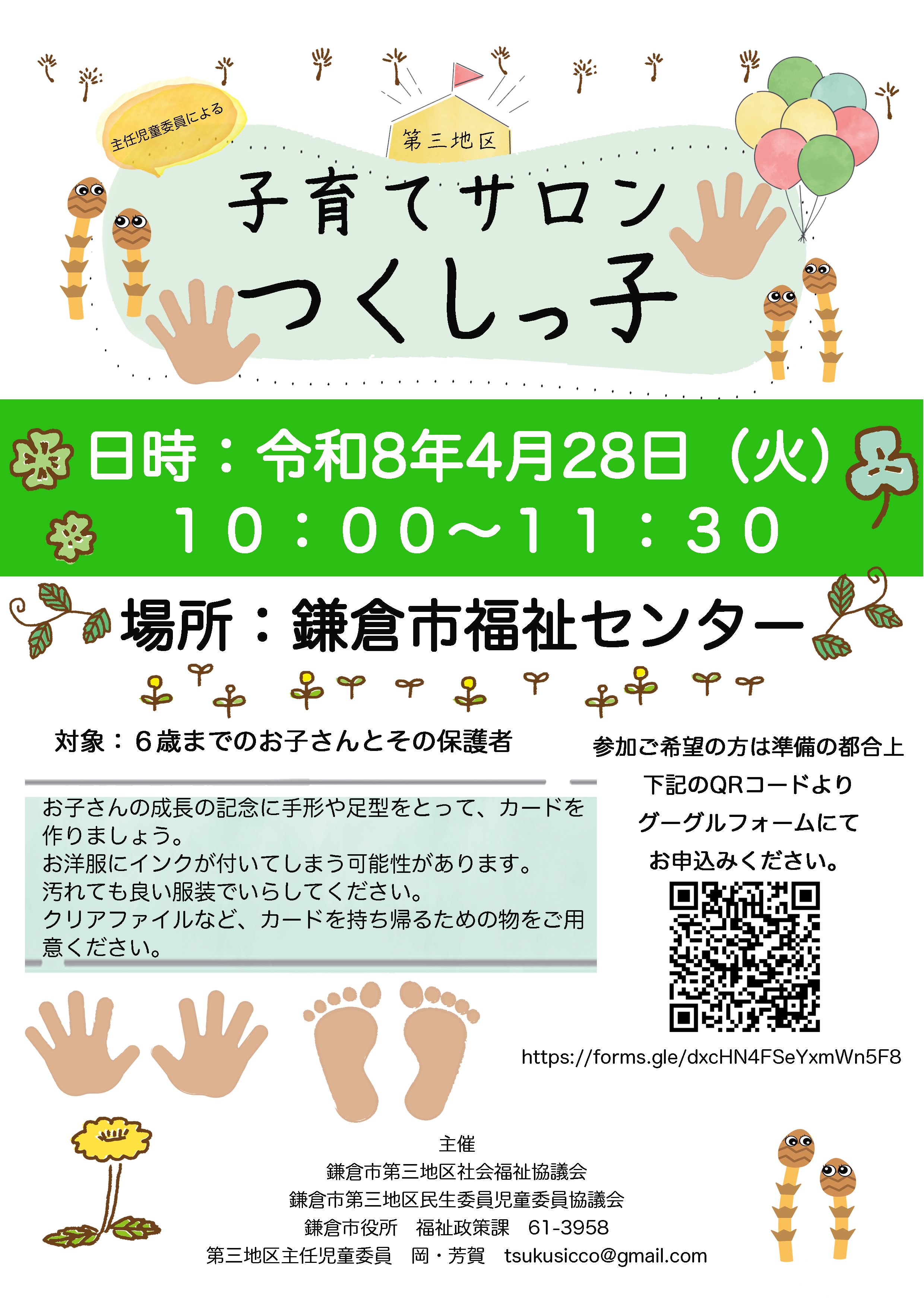 手形足形を取った用紙を持ち帰るためのクリアファイルなどお持ちください。