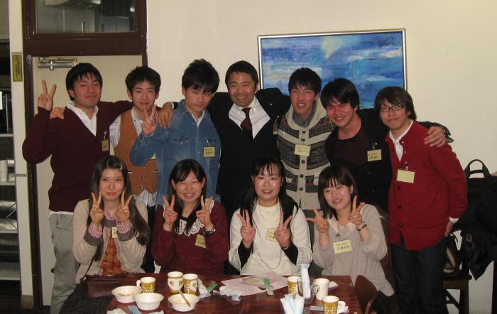 「成人のつどい」終了後、式典を成功へと導いた、実行委員会の皆さん10名と懇談を行いました。
