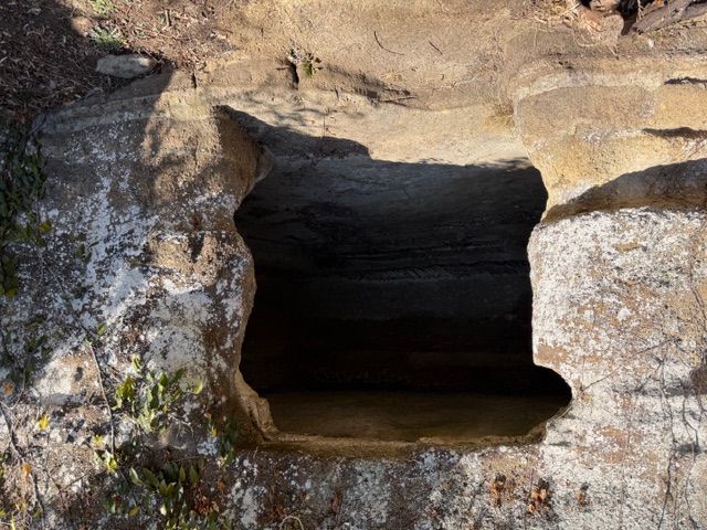 トンネルの上部には、中世に造られたと考えられるやぐらが10数基並んでいます。